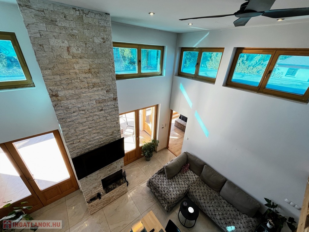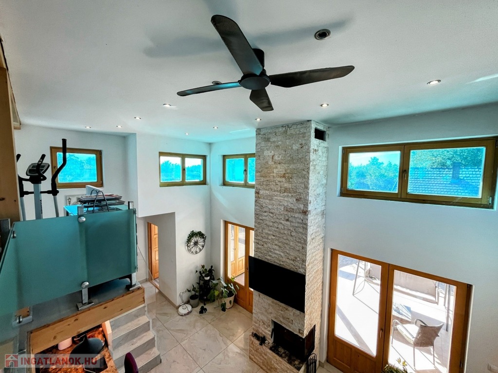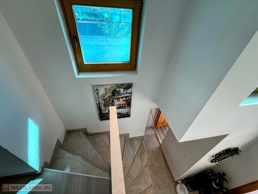 -Alapterülete: 103 m2 + 16 m2 a második szinten, a szinteket lépcső köti össze, további 146 m2 tetőtér beépítése lehetséges, ahonnan balatoni panoráma tárul a szemünk elé. A jelenlegi teraszok területe 66 nm, részben WPC-vel, részben 80x80 cm padlólapokkal burkoltak.