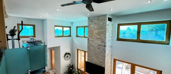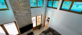 -nyílászárói fából vannak, a kellő helyeken szúnyoghálóval felszerelve, belső tere egész nap fényárban úszik, mészkő burkolatú kandallója hangulatos éke a téli estéknek.