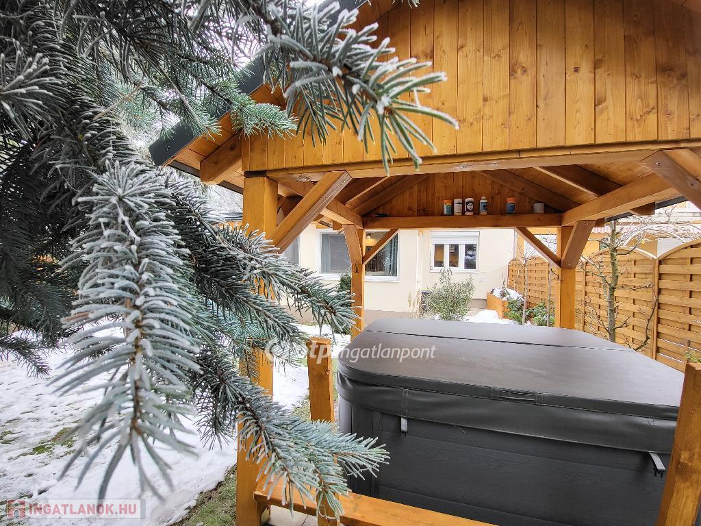 Balaton Déli part, Siófok, Balatonszéplak 122 m2 ikerház, 380 m2 telek eladó. A kivett lakóházként nyilvántartott ingatlan az Ezüstparton, a szabadstrandtól 400 méterre, 5 perc sétára található. A szigetelt, 3 rétegű nyílászárókkal ellátott, 2025-ben teljeskörűen felújított ház áramellátását napelem biztosítja. A ház fűtéséről az egész lakóteret melegen tartó cserépkályha gondoskodik, amit elektromos fűtőpanelek és egy tetőtéri klíma egészít ki szükség szerint. Az ingatlan értékét tovább növeli a hangulatos, parkosított kert jakuzzival, kerti sütögetővel, valamint egy fedett, 50 m2-es térkövezett terület, ami jelenleg dupla kocsibeállóként funkcionál, de teraszként, szabadidős tevékenységre, pihenésre is kiválóan alkalmas. További extrák: 11 kW-os elektromos autótöltő, 3x32 amper fázis, elektromos kapu, szúnyogháló, redőny. Az ingatlan elhelyezkedésének és kialakításának köszönhetően tökéletesen alkalmas családoknak állandó lakhatásra vagy nyaralásra, de befektetésként is kiváló, ritka lehetőség. Tömegközlekedés, bevásárlási lehetőség, vendéglátóhelyek a közelben. Bővebb információért keressen telefonon! M320769