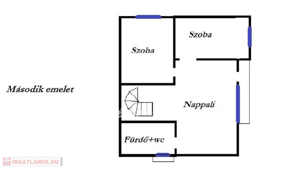 Felső szint: tágas nappali, erkélykapcsolattal, felújított fürdőszoba WC-vel, két hálószoba