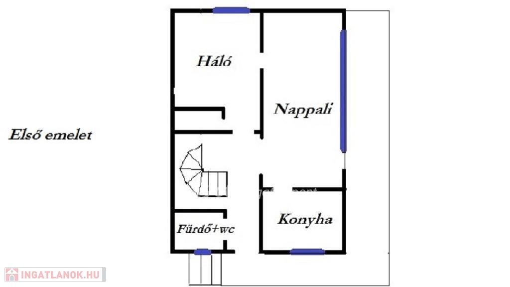 Első szint (lakótér): előszoba, fürdőszoba WC-vel, gardrób, hálószoba, nappali, konyha - minden helyiség napfényes, világos
