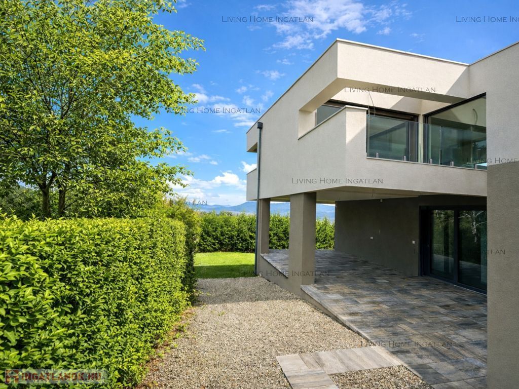 A newly built, premium quality detached family home is for sale on one of Solymár's most beautiful hillsides with panoramic views. The light flooding in through the huge glass surfaces and the stunning views show a different face in every season – morning coffee on the terrace, sunset in the living room in the evening. The eternal panorama of the Buda Hills and the clean, modern architecture create perfect harmony here.The 245 m² home with 5 rooms is unique for its floor-to-ceiling glass surfaces and panoramic terraces. The Vaillant heat pump system, ceiling cooling and heating, heat recovery ventilation, and premium windows and doors with shutters ensure the highest level of comfort. Every detail here is about quality.