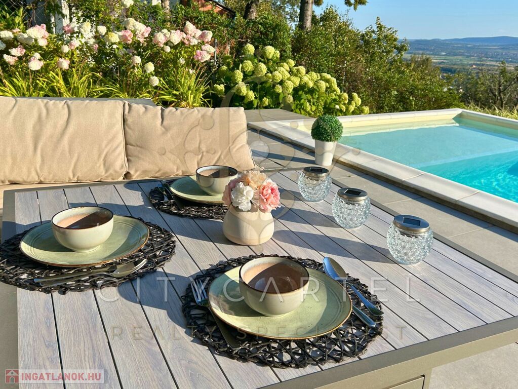 EXCLUSIVELY IN OUR OFFER! HUGE PRICE REDUCTION – UNIQUE OPPORTUNITY! Instead of 275 M HUF now 250 M HUF PANORAMIC MINIMAL HOUSE IN THE MOST BEAUTIFUL PART OF SZENTENDE – HEATED POOL, PARKED GARDEN, SMART SOLUTIONS We offer for sale this TWO-LEVEL, MINIMAL STYLE FAMILY HOUSE BUILT IN 2021 in the popular part of SZENTENDE, in the quiet street of PISMÁNY. The greatest special feature of the property is the UNMISSABLE PANORAMIC VIEW, which opens onto the DANUBE BEND, the TOWN OF SZENTENDE and the OPEN AIR MUSEUM – a sight that shows a different face in every season, yet is always impressive. Imagine sipping your morning coffee on the terrace, while the unmissable panorama of the Danube Bend unfolds before you. The heated outdoor pool shimmering in the sun and the proximity to nature complete the silence. MAIN PARAMETERS Plot: 760 sq m Living space: 160 sq m (net 108 sq m) Rooms: living room + 2 bedrooms Bathrooms: 2 Terrace: 114 sq m FEATURES Smart home system Energy efficiency and intelligent technology: heat pump - underfloor heating, ceiling cooling 13 solar panels with inverter Heat recovery ventilation - fresh, dust-free air with minimal heat loss 3-layer Hofstadter windows and doors Security entrance door Custom-made tempered glass shower doors, Hofstadter interior glass doors Alarm system with motion and opening sensors Electric, aluminum shutters in all rooms Paved, 50 sq m carport with remote control gate, for two cars Premium hot and cold flooring Miele appliances Automatic irrigation system Heated outdoor pool equipped with lighting and remote control (7 × 4 m, 150 cm deep) Automatic sunshade and shading Mosquito nets Spectacular fireplace HOUSE LAYOUT Garden level: Spacious, panoramic living room with American kitchen and dining area Large glass surfaces, with direct access to the terrace and outdoor pool Practical storage room with mechanical equipment and washing machine Separate toilet with washbasin First floor: Two bright bedrooms, both with private bathrooms and balcony access One bedroom has a bathtub with toilet, the other has a shower with toilet and wardrobe The stunning panorama can also be enjoyed from the bedrooms SPECIAL EXPERIENCES THAT THIS HOME OFFERS Heated outdoor pool equipped with LED lighting and remote control - relaxation that can be enjoyed throughout the season Beautifully landscaped garden - with terrace design, automatic irrigation system Peace and quiet - the perfect place to recharge and relax Unmissable panorama - a view of the DANUBE, the SKANSEN and BUDAPEST in different colors every day is Modern minimal style – clean shapes, spacious, sunny spaces ENVIRONMENT PISMÁNY IS ONE OF THE MOST BEAUTIFUL PARTS OF SZENTENDRE, which is made truly special by its QUIET, FAMILY ATMOSPHERE, PROXIMITY TO NATURE and VIEW. The city center and the HÉV station are easily accessible by car and public transport. EXTRA POSSIBILITY The 778 NM PLOT located next to the property can also be purchased, which also offers FURTHER POSSIBILITIES – whether it is a PASTRY SHOP, WINE HOUSE, GUEST HOUSE, or other function. This EXCLUSIVE, MODERN HOME is not just a house, but a LIFESTYLE. QUIET, PEACEFUL, UNPARALLELED PANORAMIC, MODERN DESIGN AND MODERN TECHNOLOGY – all in one place, for those who value COMFORT, HARMONY, CLOSENESS TO NATURE and SPECIAL QUALITY OF LIFE, where every day is like a vacation. Such a special property rarely comes on the market – don’t miss this unique opportunity! Come, see it in person and experience the special atmosphere of home! Call with confidence – I am happy to provide further information and a private demonstration, I look forward to your call! BEST REGARDS: BACSA BRIGITTA REALTY SPECIALIST +36 30 815 2512 B.BRIGITTA@CITYCARTEL.HU CITY CARTEL BUDA KFT. CITY CARTEL FRANCHISE HUNGARY KFT. 1118 BUDAPEST, HEGYALJA ÚT 54. 1026 BUDAPEST, SZILÁGYI ERZSÉBET FASOR 121. BUDAGYÖNGYE SHOPPING CENTER WWW.CITYCARTEL.HU