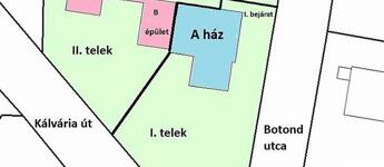 - A telken kettő családi ház van, ügyvédileg megosztva, a két családi ház között egy téglaépület helyezkedik el, ami elválasztja a két házat egymástól.