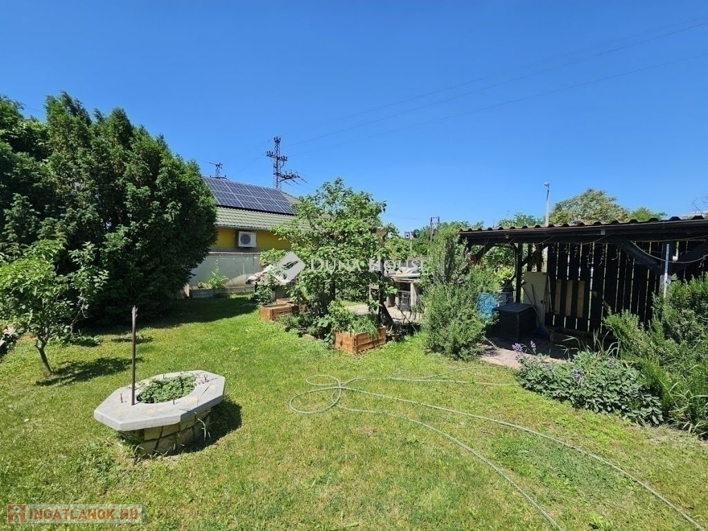 A lakáshoz körbekerített 115 nm-es telek tartozik, ahol szaletli és sütögető is található.