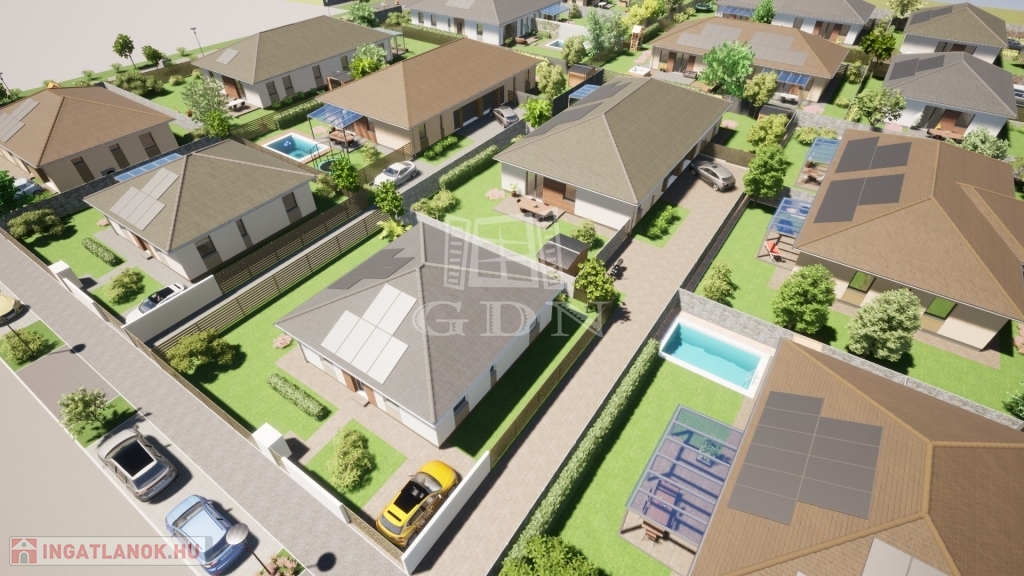 Az ingatlanok előtt vendégparkolók kialakítására is sor kerül. Gépkocsi fedett beálló opcionálisan kérhető.
