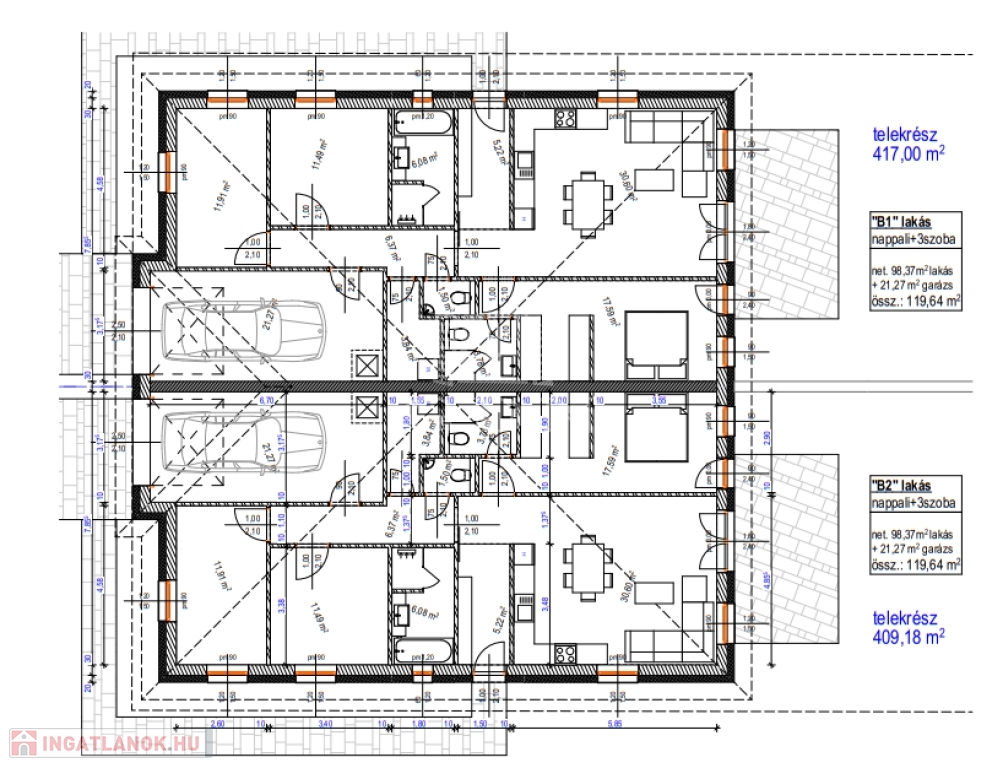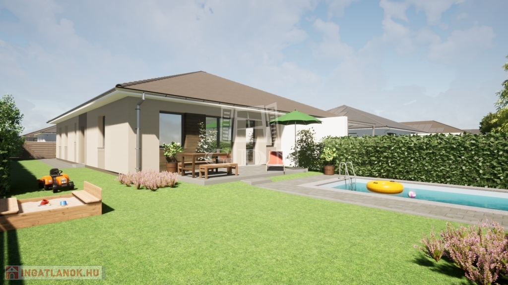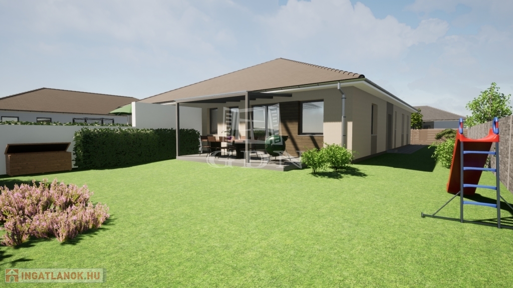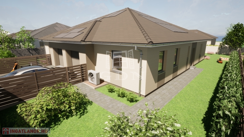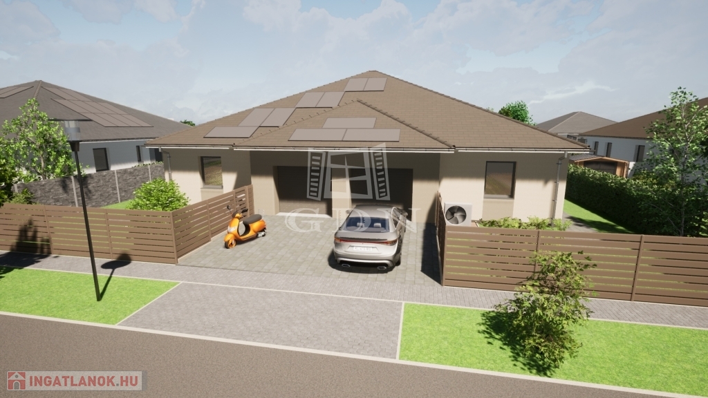 A NEW WORLD OF HOME CREATION. In Szombathely, the already well-known ÚJVILÁG RESIDENTIAL PARK is expanding in a new phase. Both detached family houses and semi-detached houses will be available from 85 m2 to 139 m2. Function, intimacy, comfort, conscious smart, green solutions are the most important design aspects. The planned interior spaces can be changed according to customer needs. In terms of its location, it is the best possible choice, as it is close to the city center, the infrastructure is excellent, and the expressway connection bypassing the city is easily accessible. The investors have almost uniquely come up with plans that include today's modern, energy-efficient, wallet-friendly solutions. - HEAT PUMP The property is heated and cooled by an air-to-water heat pump, with a 250-liter hot water tank, and Rehau underfloor heating will be installed in the house, which will make home decoration easier. The basic installation of the water system is also made of the Rehau system, and the price includes a water softener. - SOLAR SYSTEM A 5 kW solar system will be installed in connection with the mechanical system of the property, which includes a hybrid inverter, so a 10-15 kW battery system can be connected. The battery system is available for an additional charge. - RAINWATER COLLECTION Rainwater will be connected to a 5 m3 rainwater collector, equipped with a desiccant, which is excellent for watering the vegetation. This way, there is no need to drill a well and the water management of the area will not be disrupted. Plus content that is also included in the basic price and is an inseparable organic part of it: - KITCHEN FURNITURE Each property includes kitchen furniture worth 1.5 million forints. - GARDENED YARD Paving of the sidewalk, driveway, and traffic areas belonging to the property, in an area of approximately 60-100 m2. A garden tap will also be built in the yard. Guest parking will also be created in front of the properties. A covered carport can be requested as an option. - FENCE Construction of a fence on the right and left side of the plot and a dividing fence (surface-patterned concrete element) between the properties at a height of 1.75-2 m. Other technical content: Load-bearing walls are made of Porotherm 30 X-therm Rapid bricks, the walls separating the apartments are made of soundproof Porotherm 30 AKU Z P15 bricks. A reinforced concrete structure is built from Porotherm U formwork 30 elements based on a static plan. A nailed-plate roof structure manufactured according to the architectural plans and computer-aided roof design will be placed on top. This roof structure allows us to vary the interior spaces as desired. After the waterproofing is completed, Tondach Planoton 9 roof tiles are installed on the roof with the associated accessories and roof elements. Its tin material and elements are an integral part of this family. The partitions are mounted on a factory-installed 7.5 cm plasterboard structure with double plasterboard sheets with heat and sound insulation on both sides, which results in a 12.5 cm thick partition instead of the traditional 10 cm thick partition. The great advantage of this technology is that the 10 cm ceramic partition does not need to be cut out or weakened during assembly, the assembly is formed in the 7.5 cm structure. The ceiling is formed by the elements of the roof structure, to which a plasterboard false ceiling is attached, creating a 20 m2 area suitable for packing, which can be reached using an attic ladder. The load-bearing walls and the soundproof wall will also be covered with plasterboard, so the entire interior will form a homogeneous, extremely precise surface. Windows and doors will be installed in premium quality, highly sound- and heat-insulated plastic windows and doors in a 3-layer 5-chamber design, equipped with mosquito nets and aluminum shutters. An entrance door is optional. Interior doors can be selected from the manufacturer's and contractor's samples specified by the investor, up to a gross value limit of 100,000 HUF/piece. The garage door will be sectional, motorized. The building will be covered with 10 cm thick XPS baseboard insulation, baseboard plaster, 20 cm thick graphite insulation on the facade, and 1.5 cm thick Baumit scraped thin plaster. 30 fireproof insulation will be applied to the lightweight ceiling. A three-phase electrical system with 3x25 A output will be installed in the houses. The purchase price also includes preparation for electric car charging, basic installation of an alarm system and installation of an intercom. Cold and warm coverings are available. Warm coverings (laminate flooring) are priced at a gross price of 5,000 HUF/m2, cold coverings (paving tiles) are priced at a gross price of 8,000 HUF/m2. If the selected products exceed these prices, of course, customers can choose the coverings of their choice at an additional cost. If you would like more information, please contact us! Perhaps the last good option is Újvilág Lakópark, in terms of its location in our city. Use the services of our office. We are happy to assist you if you need interior design advice. 26/B
