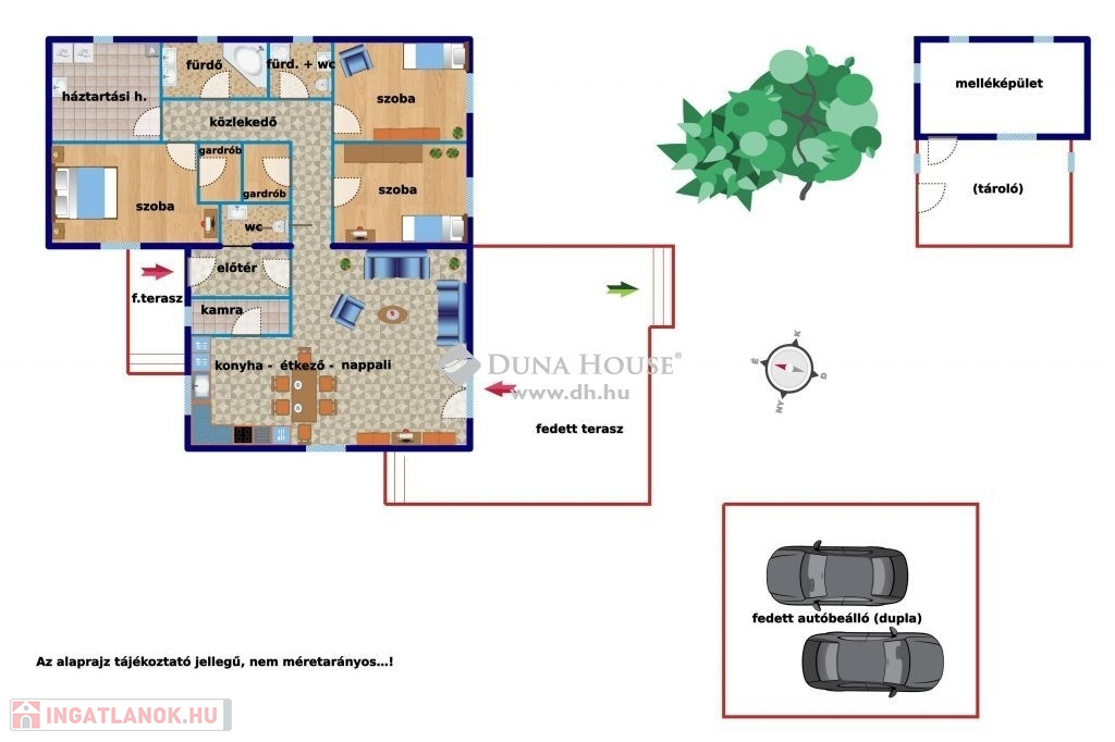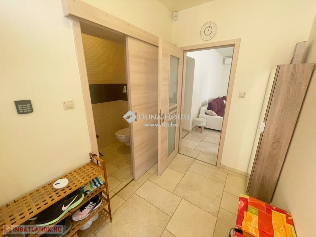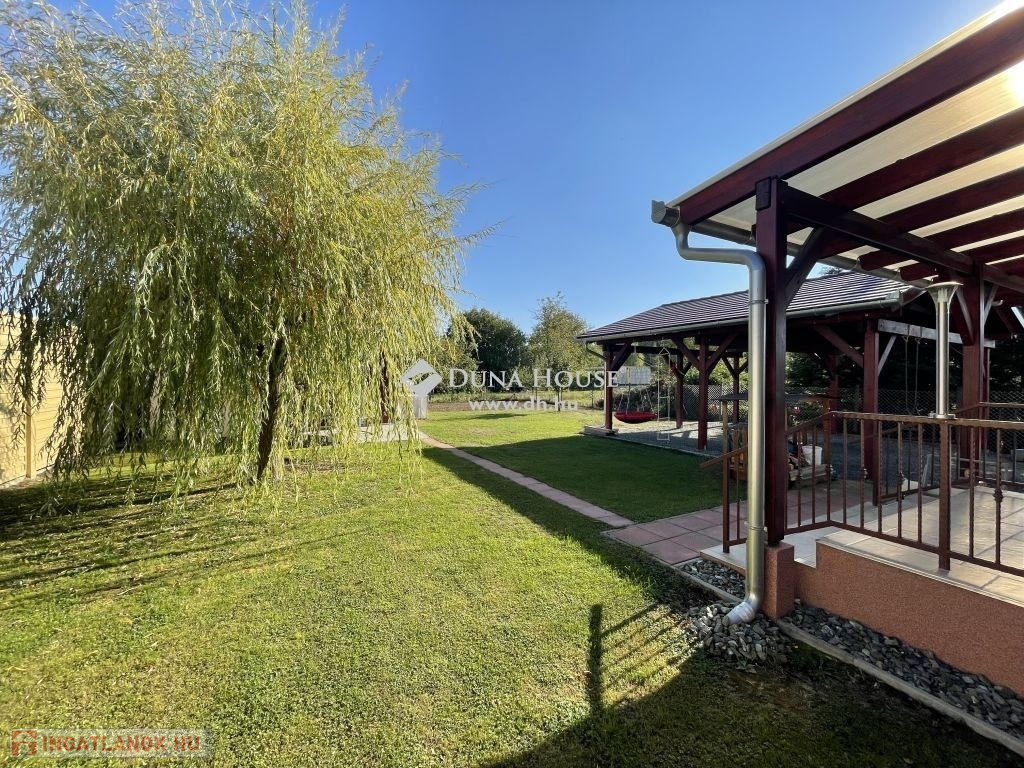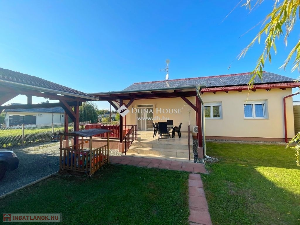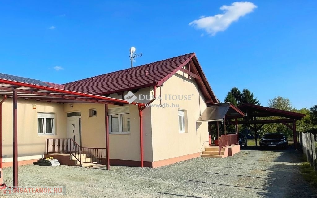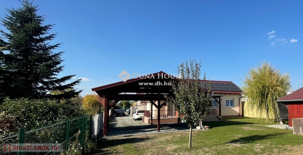 In Szombathely, in the Herény garden suburb, a unique two-family house is for sale, with extra technical content! The property is located on a quiet, internal plot accessible from a private road, built in 2017. The classic exterior appearance of the house and its outstanding technical content are combined with a modern, clean interior. The building is a semi-detached house, one-story, well separated from the neighbor, providing a completely private living space. A covered terrace-facing entrance hall leads to the living room with an American kitchen, to which a 26 m2 covered terrace is connected, facing the garden, with a southern orientation. The hallway leads to the bedrooms and bathrooms, as well as the utility and mechanical rooms, as well as the wardrobe. There is a covered parking space for two cars next to the building. There is also an outbuilding at the back of the plot, which is suitable for storage or a workshop or hobby room. The plot behind the house is landscaped and grassed... The property has a lot of comfort and technical extras, e.g.: 3x 25 A -electric boiler + solar panel system 15 kw, covers the entire heating and electricity demand - air conditioning -condensing gas boiler - wall heating in the rooms, wall and floor heating in the living room, wall and floor heating in the bathrooms + towel radiators -.central water softener -aluminum combi (mosquito net) shutters - 30 cm SILKA masonry, 3x5cm 150 hardness EPS in the base, 2x20 cm insulation on the ceiling, 2x12.5 multipor on the facade - alarm + camera system - electric gate etc... residential building: 110 m2 - covered terrace: 25.8+3.5 m2 - covered carport: 25 m2 - outbuilding: 24 m2 - plot: 800 m2 For further information, please contact us!