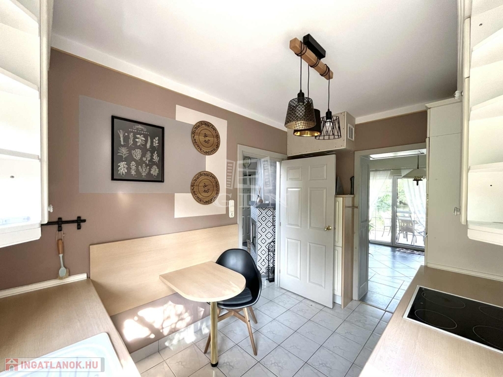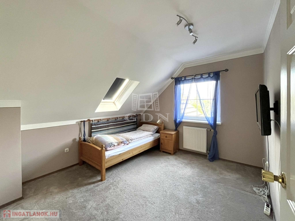 Az 1996-ban épült, bruttó 200 m²-es családi ház egy 720 m²-es, gondosan ápolt telken helyezkedik el, ahol a zöld növényzet, a fák és a hangulatos kerti sütögető intimebbé, barátságosabbá teszik a mindennapokat. A kert igazi oázis: ideális pihenésre, családi összejövetelekre vagy akár nyári estéken egy pohár bor melletti kikapcsolódásra.