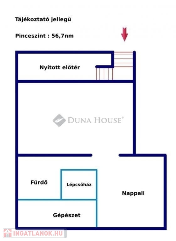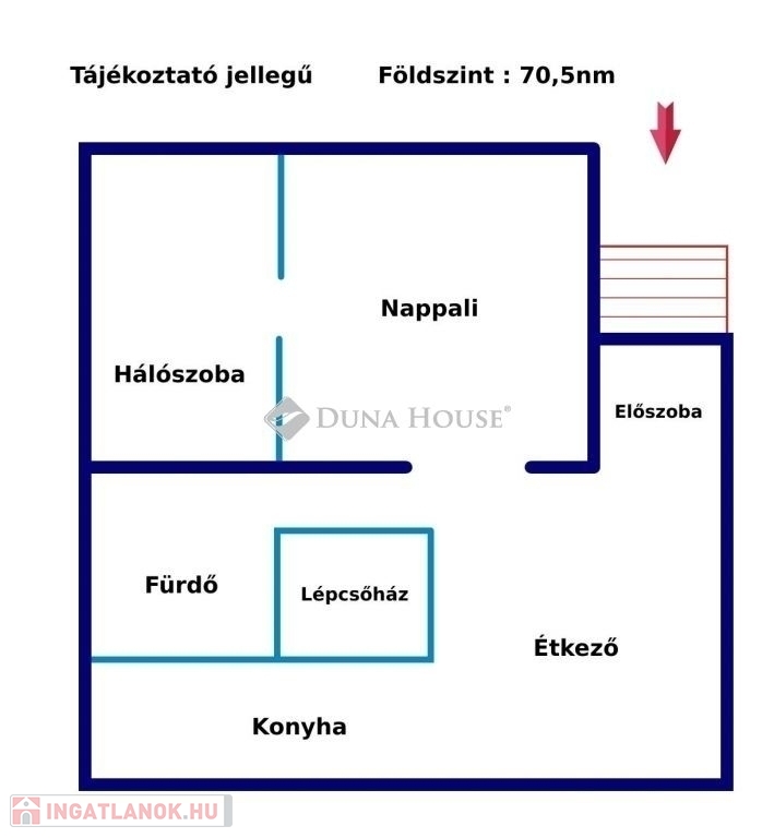 Földszint: 1 szoba, Nappali, Konyha + étkező, Fürdőszoba és WC