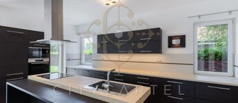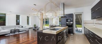 A minimál stílusban, minőségi anyagok felhasználásával, megépített, panorámás házat, beragyogja a fény, amit a gyönyörű nagy nyílászáróknak köszönhet. A ház amerikai konyhás nappalija 95 nm, nyáron a nyitott terasszal + 60 nm-es. Az elegáns konyha, korszerű gépekkel felszerelt.