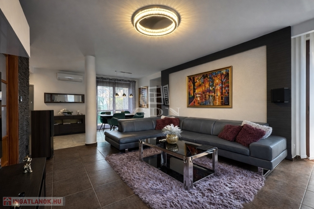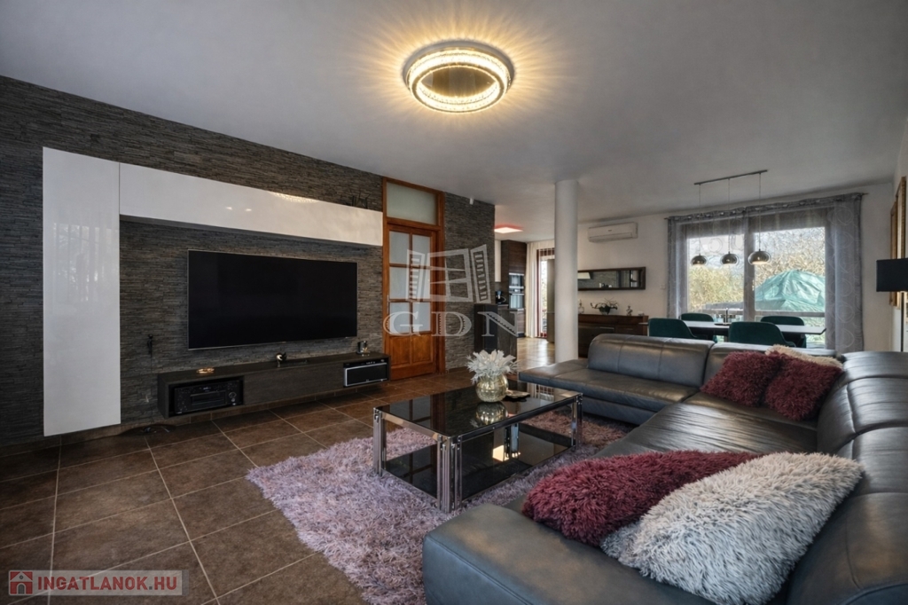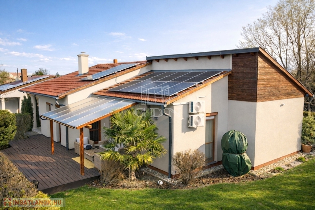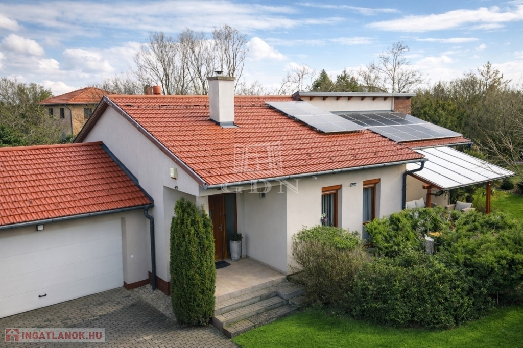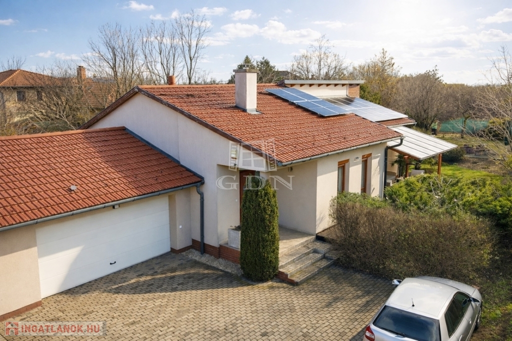 Vh-00 Úrhidán, az Arany János utcában, lakóparki környezetben eladó egy újszerű állapotú, nappali + 3 hálószobás, összesen 144 m² -es lakóingatlan, amely 860 m² nagyságú,- önálló használatú telekrésszel, kétállásos gépkocsitárolóval, napelemes rendszerrel, valamint magas felszereltséggel rendelkezik.