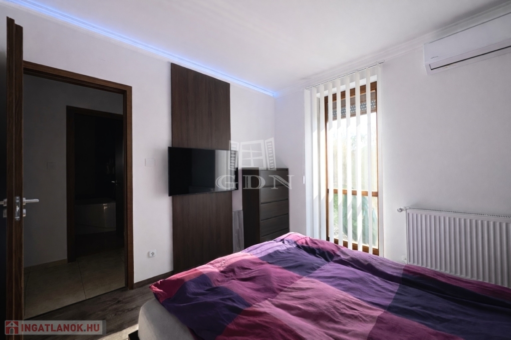 A nappaliban, valamint mindhárom hálószobában önálló hűtő-fűtő, split klímaberendezés került telepítésre.