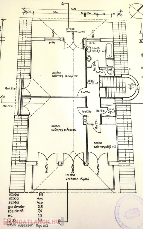 A felső szinten 4 szoba, gardrób, fürdőszoba helyezkedik el.