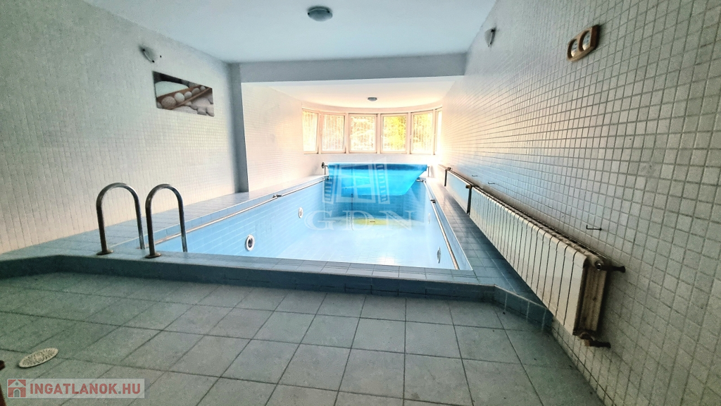beltéri tágas, fűtött medencével, szaunával.