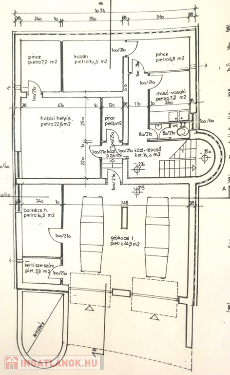 Az épület földszintjén 2 állásos garázs, wellness, mosókonyha épült.