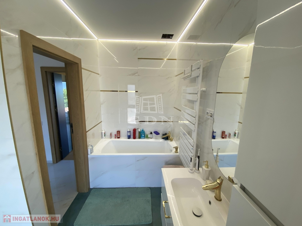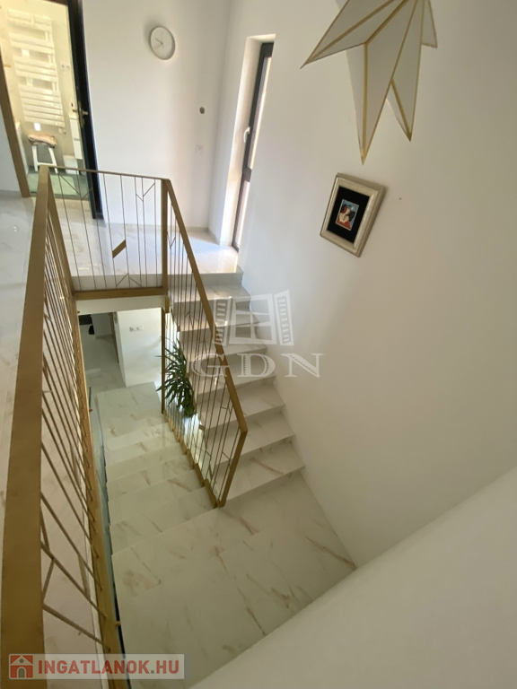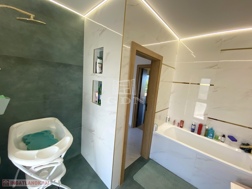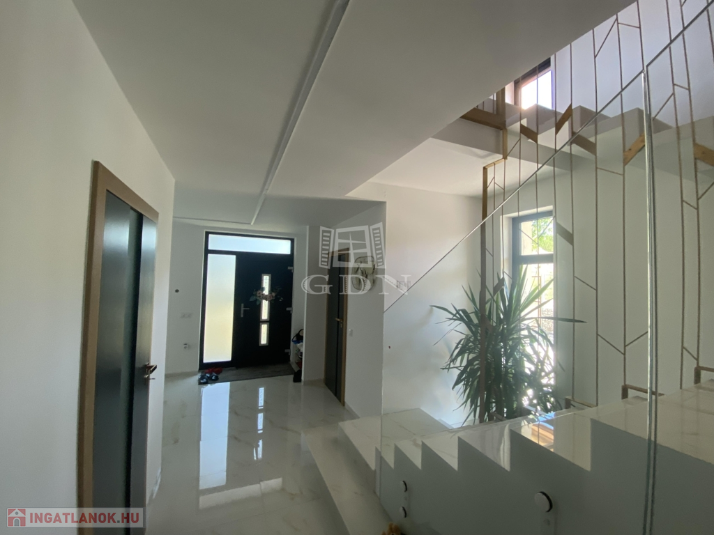 Eladásra kínálunk Vác egyik legexkluzívabb, csendes, mégis frekventált kertvárosi övezetében egy egyedi tervezésű, energiatakarékos, új családi házat, amely egy 1720 nm-es, örök panorámás telken helyezkedik el.