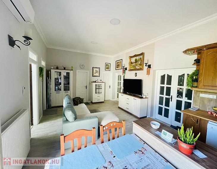 Family house for sale in Kisvác with two separate apartments, on a spacious plot! In a popular part of Kisvác, just 1-2 minutes walk from the Danube bank, two fully renovated apartments are for sale on a 1260 sqm plot. The apartments are separate, so they are an excellent opportunity for multi-generational families or for investment. Apartment 1 (92 sqm): Living room with American kitchen 2 bedrooms 2 bathrooms + WC Apartment 2 (108 sqm): Living room with American kitchen 3 bedrooms 1 bathroom 1 separate WC Both apartments have air conditioning, underfloor heating and a gas boiler to ensure year-round comfort. The property includes: Covered parking space Lockable garage Location: Bus stop: approx. 1 minute walk Shopping facilities: approx. 10 minutes walk School and kindergarten a few minutes walk Danube bank: 1-2 minutes walk This property is an ideal choice for families who want to live in a quiet, yet central environment, or for investors who are looking for a multi-apartment property. Contact our office with any questions or to view. If you need a loan to buy your new home, our professional loan broker colleagues are at your disposal free of charge.
