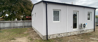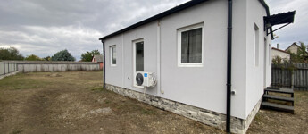 Az épület teljesen újszerű állapotú, 2 szoba + nappali, konyha-étkező, fürdőszoba található benne, víz, villany közművekkel felszerelt, zárt tartályos emésztővel, fúrt kúttal a kertben.