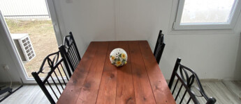Monortól néhány km-re, Vasadon, belterületen, lakóházas övezetben eladó egy azonnal költözhető, szigetelt, klimatizált, könnyűszerkezetes mobilház 600 m2 telekkel.