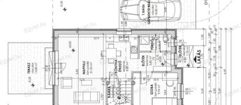 A ház egy nagyobb telken fekszik, melyből kb. 280 nm privát kert. Gépjármű beállási lehetőségével a fedett térkövezett gépjármű beállón lehet biztonságosan parkolni.