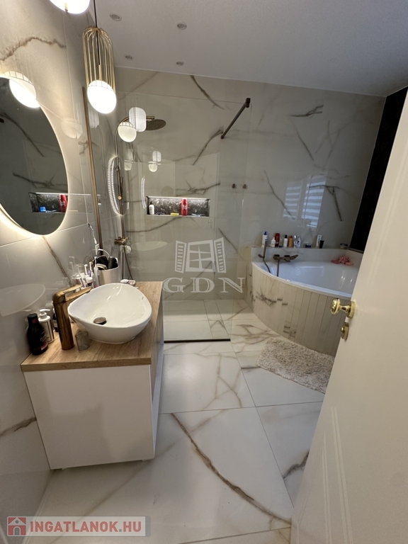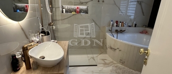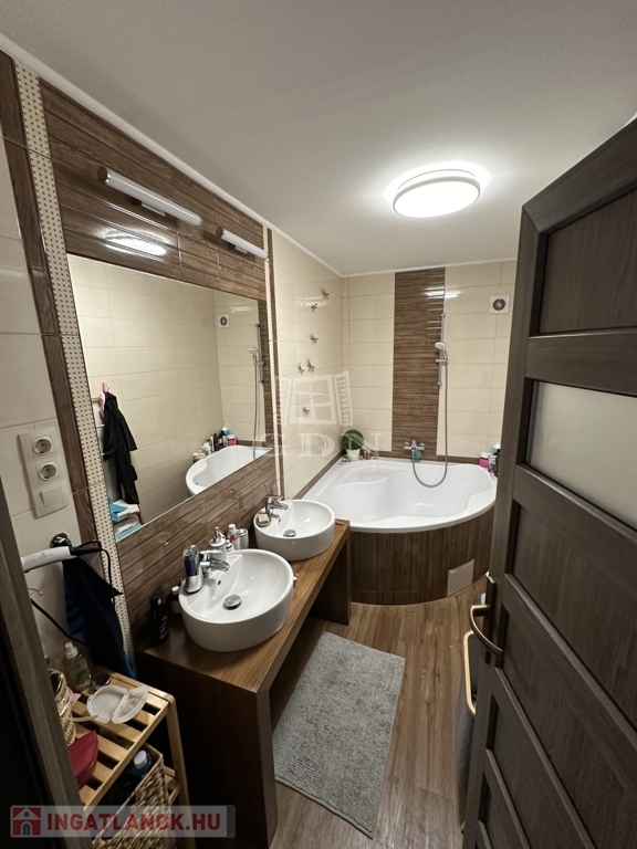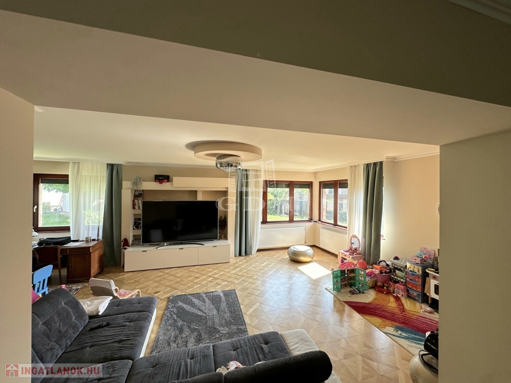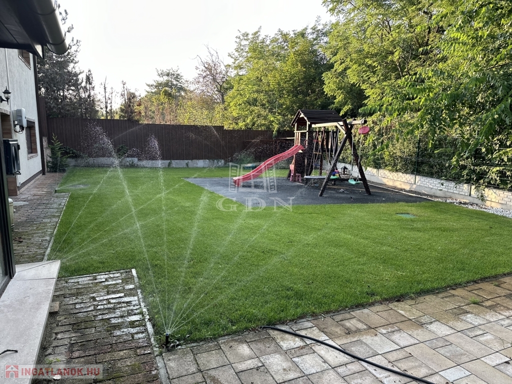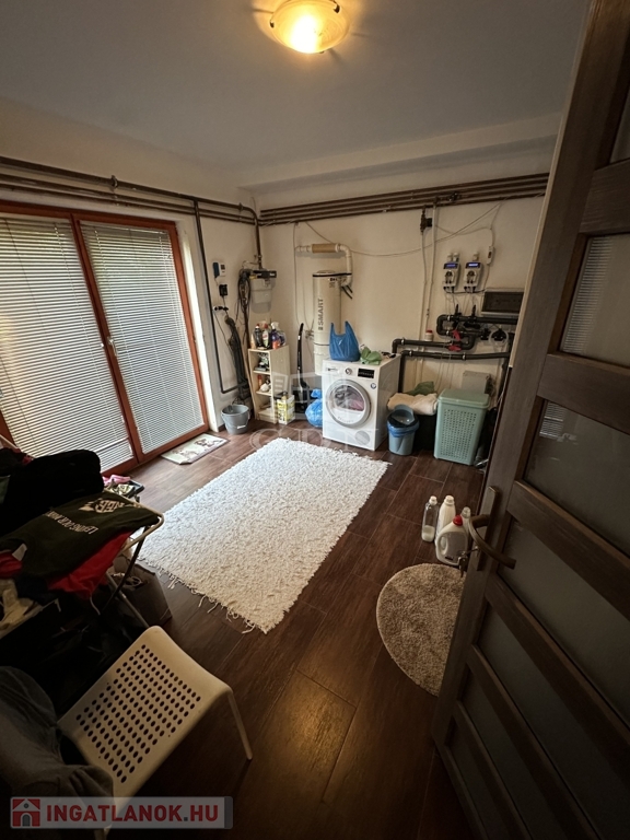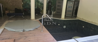 Az igazi kikapcsolódást az alsó szinten található WELLNESS RÉSZLEG teszi teljessé, ahonnan a hatalmas nyílászáróknak köszönhetően remek kilátás nyílik a kertre. A 9x4 méteres medence és a mellette található jakuzzi hőszivattyús fűtéssel rendelkezik. Külön helyiségben található a szauna, és a zuhanyzó. Ugyanezen a szinten a 2 hálószoba mellett kialakításra került egy tároló, valamint egy tágas háztartási helyiség is.