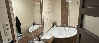 A jól átgondolt tervezésnek köszönhetően a hálószobák, és a hozzá tartozó fürdőszobák, wc-k jól szeparáltak az épület központi helyének számító rendkívül tágas, étkezős konyhától, és a világos nappalitól. Ez a 2 helyiség együtt 80 m2.