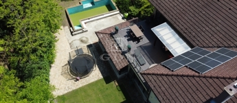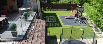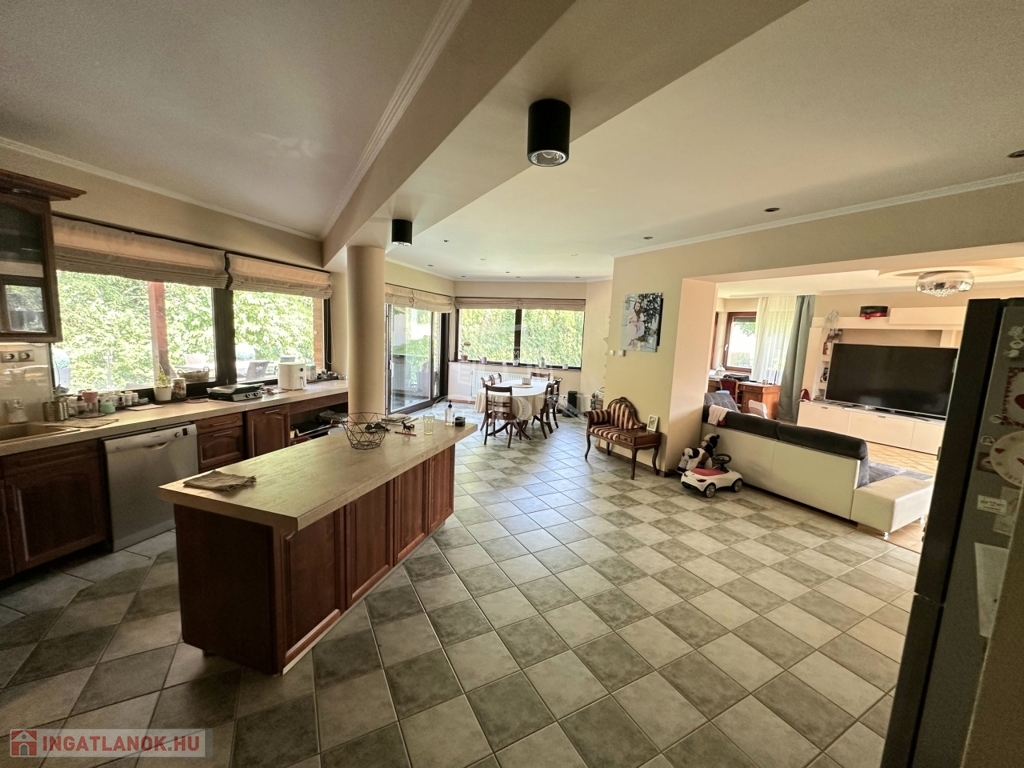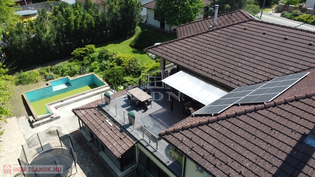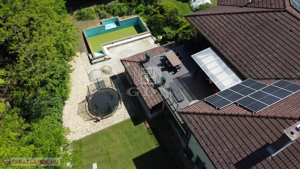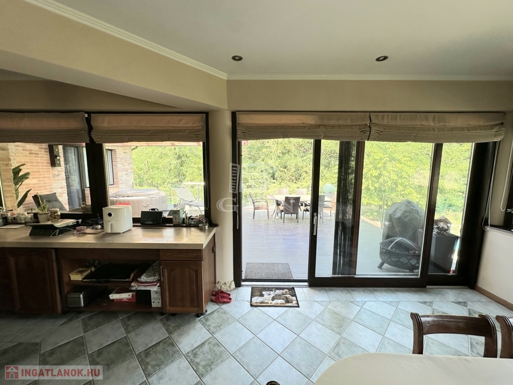 Az ingatlan másik különlegessége a csodaszép kertre, ill. a kültéri medencére néző, konyha-étkezőből nyíló 57 m2-es terasz.