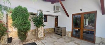 A nagy világos nappaliból nyílik az első és hátsó terasz is. A barátságos kis kertben kialakított sütögető , zárt garázs + kocsibeálló és elektromos kapu teszi kényelmesebbé a mindennapokat.