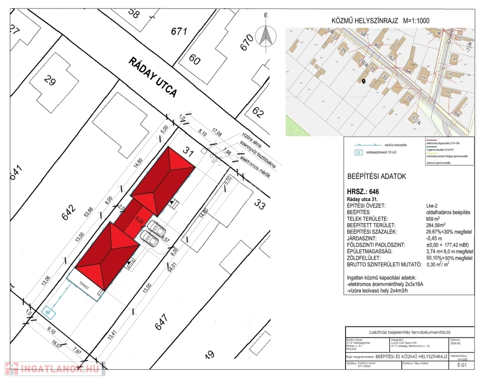 Veresegyházon a Ráday utca 31. szám alatt, 969 m²-es telken, nettó 93,2 m²-es és 94,55 m²-es három szoba + amerikai konyhás nappalival rendelkező, energiahatékony ikerházfelek eladók, megbízható számos referenciával rendelkező kivitelezőtől!