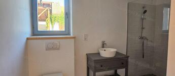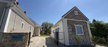 45 m²-es vendégház: A szintén frissen felújított, kétszintes vendégház ideális bisztró vagy más vállalkozás üzemeltetésére. Az elmúlt két évben sikeresen működött bisztróként, falusi pub-ként.