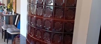 -Hangulatos cserépkályha – meghitt téli estékhez.