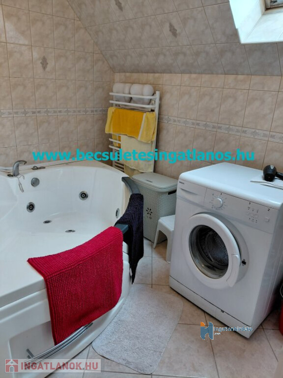 Elhelyezkedése: Belterület Állapota: Jó Komfort besorolása: Komfortos Építési éve: 2003 Alapterülete: 184 m2 Telekterülete: 217 m2 Szobák száma: 3 + 2 szoba Közművek: Gáz, Víz, Villany, Csatorna Gázellátás: Vezetékes Vízellátás: Vezetékes víz Melegvíz-ellátás: Gázkazán Áramellátás: 230V Fűtés módja: Gáz Fűtés típusa: Cirkó Homlokzat állapot: Jó Építési mód: Tégla Tető formája: Magas Tető anyaga: Cserép Parkolási lehetőség: Telken Kilátás: Utcafronti kilátás, Hegyi panoráma, Parkra nyíló kilátás Napelem: Nincs Jellemzői: Alacsony rezsi, Csendes környék, Jó közlekedés, Két bejárat Energetikai besorolás: Nincs adat Egyéb jellemzők: Erkély, Terasz, Pince, Tetőtér Közelben: Iskola, Óvoda, Vasútállomás, Autóbuszállomás, Helyi autóbuszállomás, Orvosi rendelő, Bolt, Gyógyszertár, Postahivatal, Vendéglátó egység, Autópálya Terhelések: Tehermentes ingatlan Eladásra vonatkozó információk: Kizárólag magánszemélyek jelentkezését várjuk