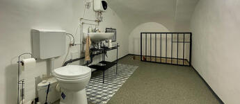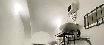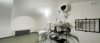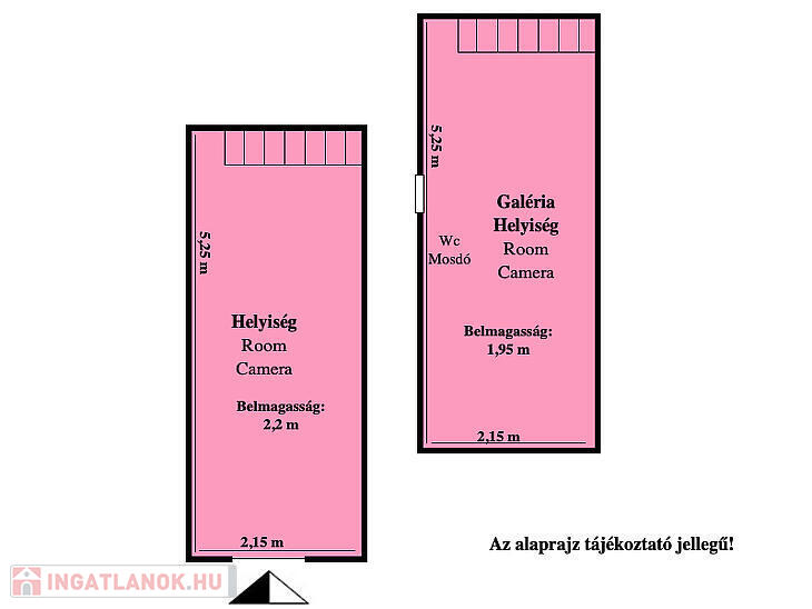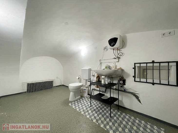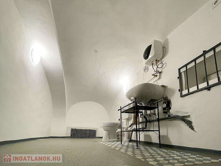 A több mint 4 méteres belmagasságot kihasználva galéria lett kialakítva, ahol egy toalett és egy kézmosó van, így a hasznos terület 11+8 nm.
