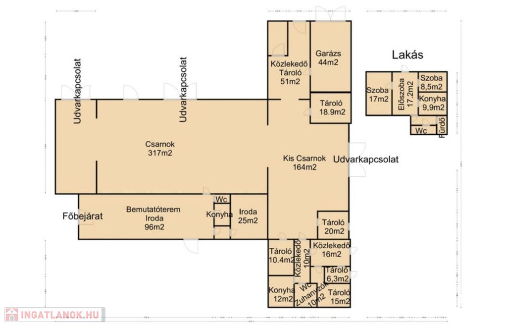 - Belső tér : 900 m² terület áll rendelkezésre, földszinti elhelyezkedéssel, mely átlagos állapotú és azonnal használatba vehető.
