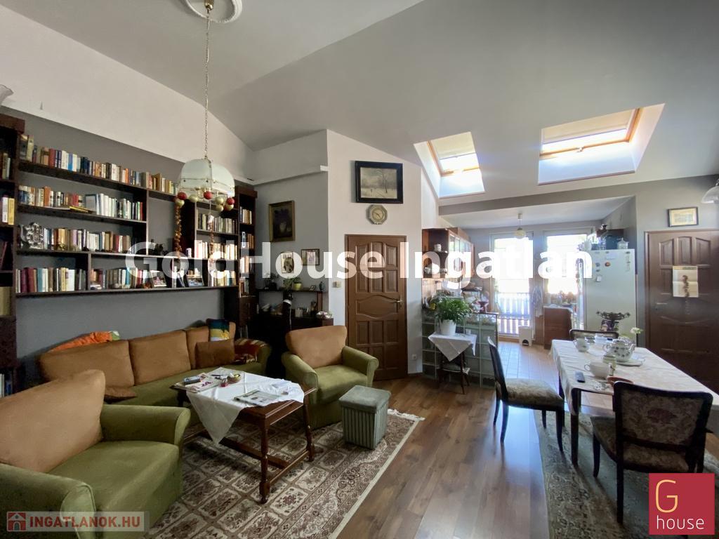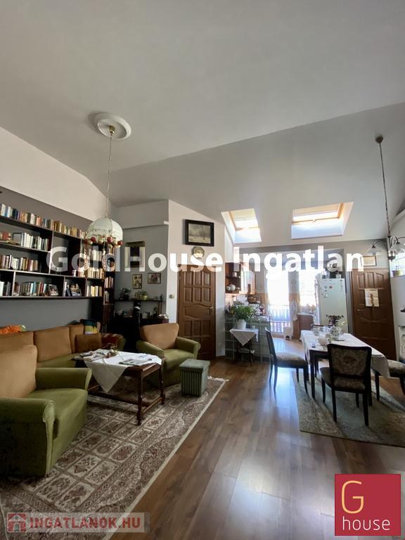 A tetőtér beépítés 16 évvel ezelőtt történt. Hatalmas amerikai konyhás nappali került kialakításra valamint 2 hálószoba és sarokkádas fürdőszoba. Tetőtér lévén a belmagasság nagy, több mint 3 méter.