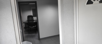 Az iroda két db bejárati ajtóval is rendelkezik, abból a praktikus elgondolásból, hogy a cég ügyfelei külön tudjanak közlekedni és zavartalan környezetben tudjanak a cégvezetővel megbeszéléseket folytatni.