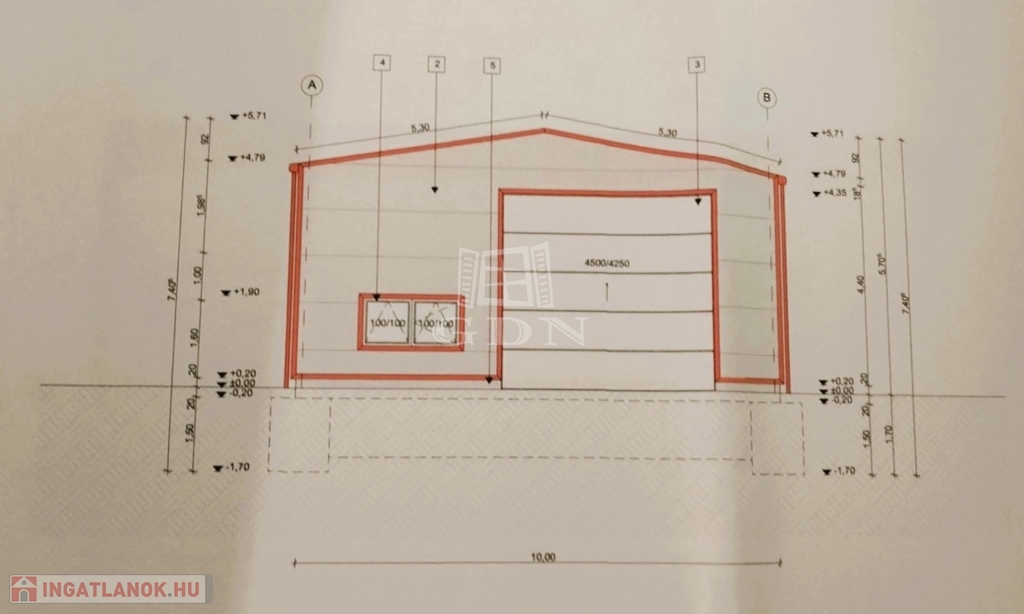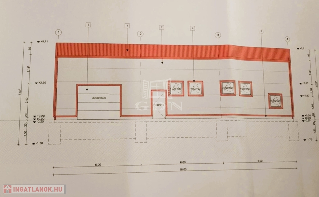 Az ingatlan rendelkezik egy érvényes építési tervvel ami egy 180nm alapterületű csarnok kivitelezését tartalmazza, valamint a csarnok nem telepített fém vázszerkezetét. Víz és áram elérhető távolságban bíztosított, a terület beépíthetősége 40%, vasútállomás 10perc sétatávolságra található.