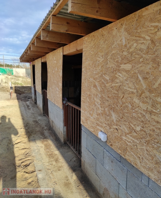 A terület 1561 m2, a főúttól 200 m-re található. A 2021-ben épült állattartásra alkalmas gazdasági épület minden higiéniai követelménynek megfele. A területen 5 db - összesen 80 m2-es állat boksz van felépítve, szükség esetén raktárnak is használható. Az ólak 15 cm-es vasbeton alappal és zsalupressz falakkal rendelkeznek.
