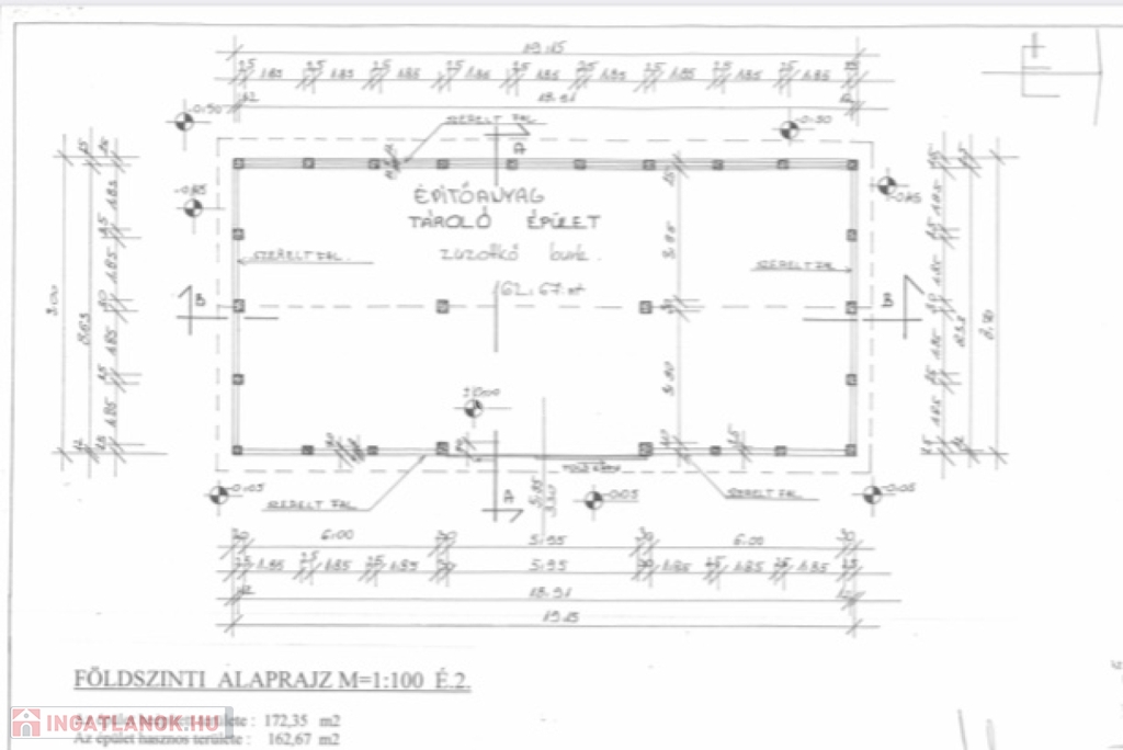 Az udvar déli részén található szigetelt, nagy belmagasságú, törésbiztos üveggel ellátott, beton vázas tégla építésű 167 m2-es egység raktár funkciót lát el, nagyméretű elektromos garázskapuval rendelkezik.