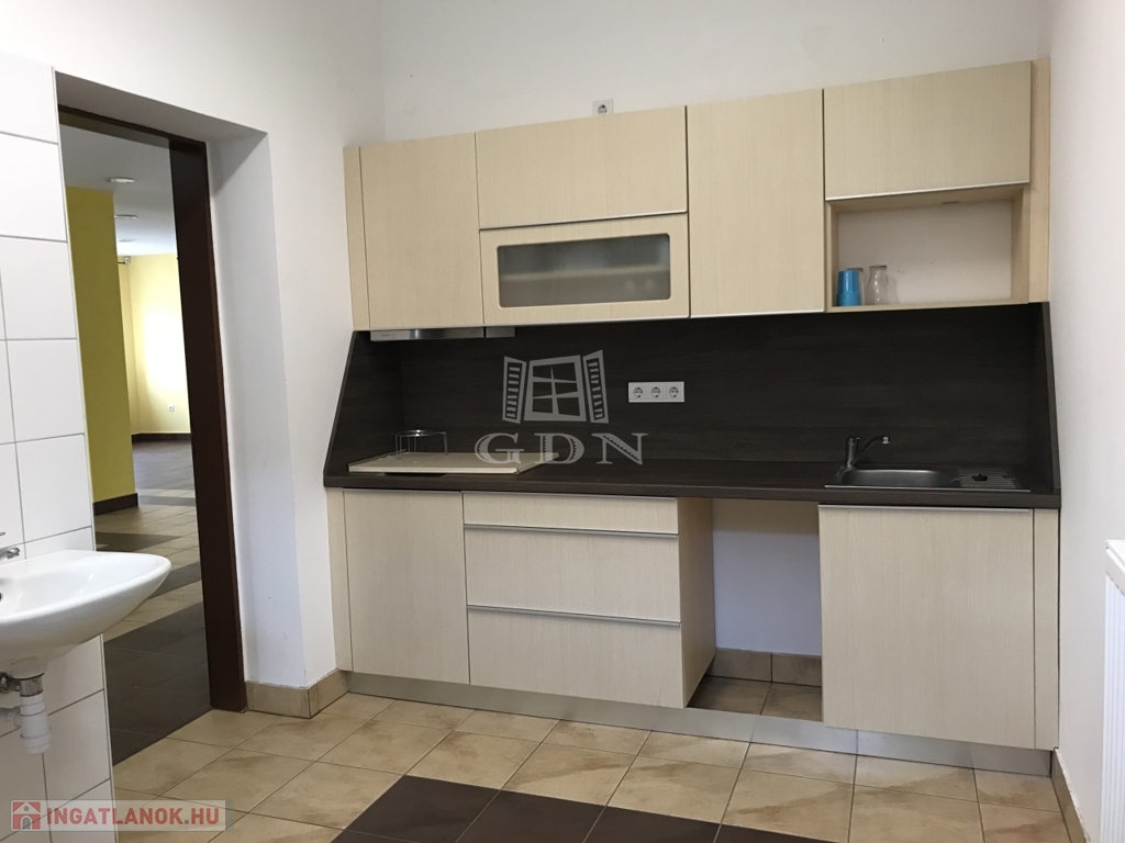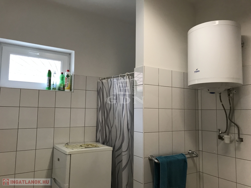 A középső, szintén külső szigeteléssel ellátott udvari épület műhely funkciót lát el, hozzá kapcsolódó iroda egységgel és szociális blokkal, gázkazán által biztosított fűtéssel, összesen 265 m2-en.
