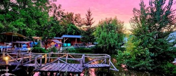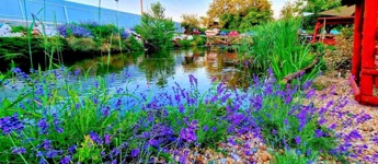 Halastó (20×40 m, 2–2,5 m mély), stég, terasz, medence