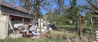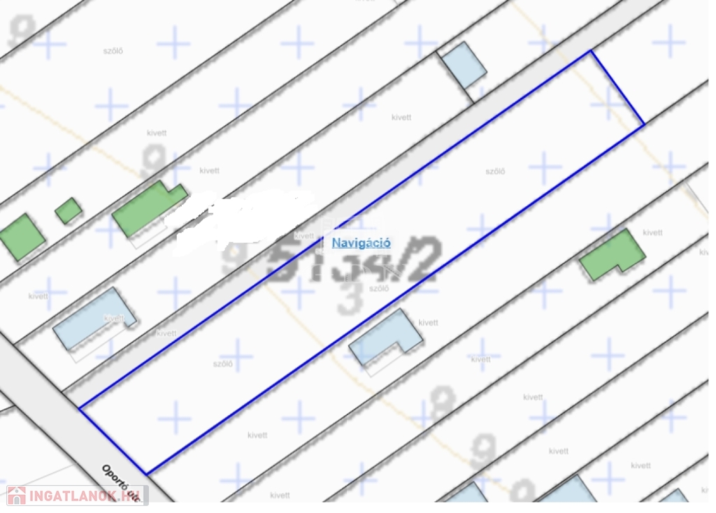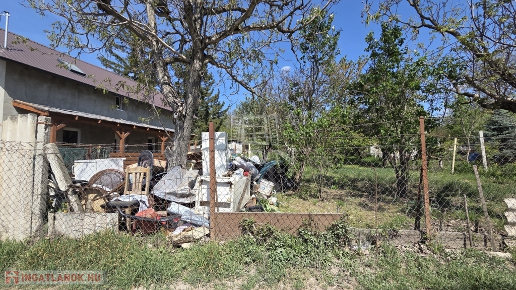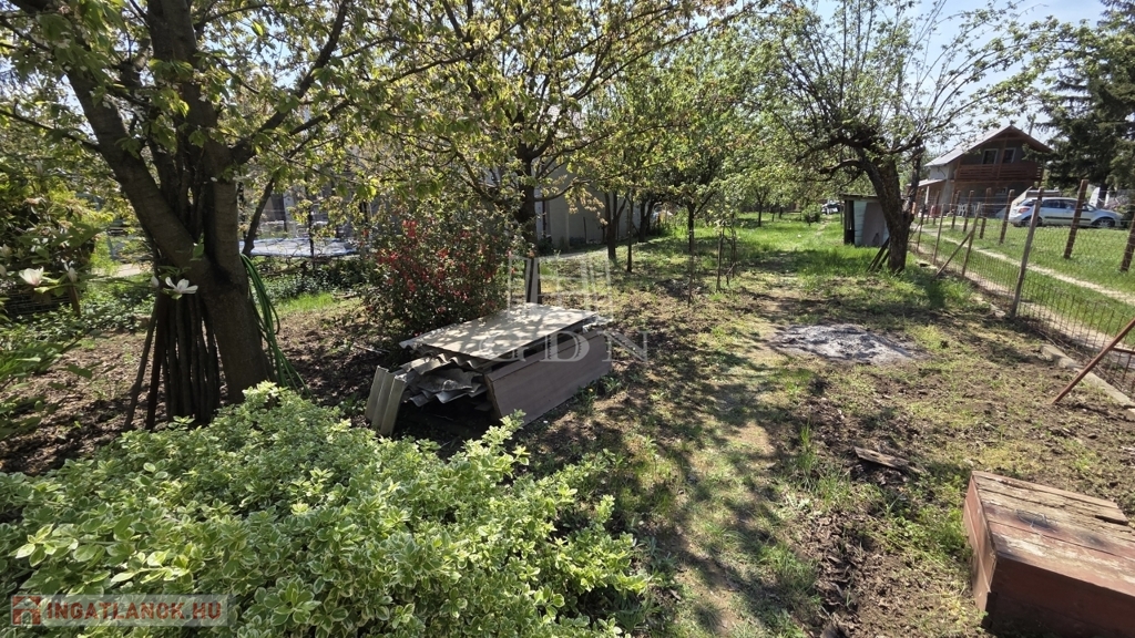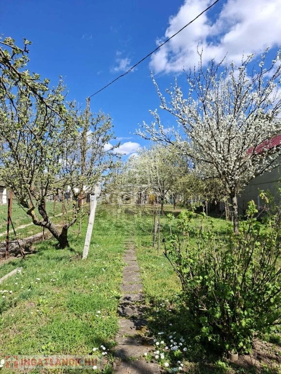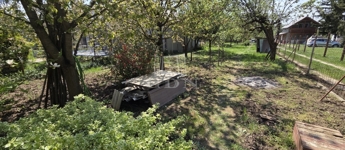Aszfaltos utcában kínálunk eladásra egy hosszúkás (utcafront 12 m) gyümölcsfákkal és gazdasági épülettel rendelkező 832 m2-es csendes hobby telket.