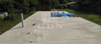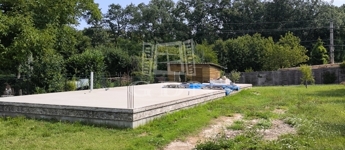 A telek beépítésére 2 szintes építmény tervezett. Ez alapján az épület (70 m2), terasz (20 m2) alapja, valamint egy 10 m2 területű pince már megépült.