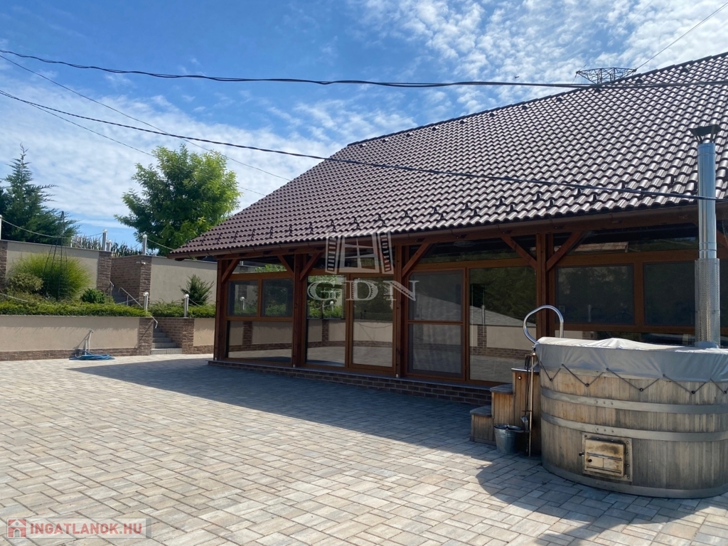 A telken elhelyeztek egy 3000 l nagyságú dézsafürdőt, melyből a csodálatos panorámában gyönyörködhetünk.