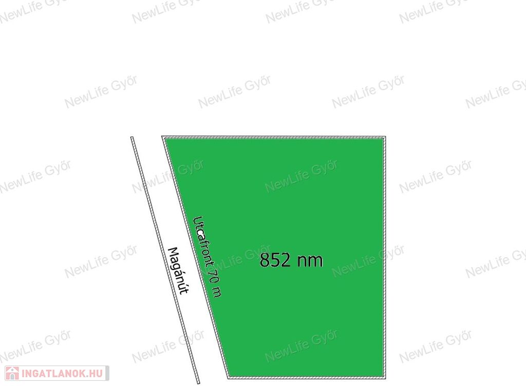 Megvételre kínálok Nyúl csendes utcájában egy új parcellázású 852 nm-es belterületi építési telket, melynek beépíthetősége 30%, utcafrontja 70 m szélességű. Az utcában megtalálható az összes közmű, így onnan van lehetőség a rácsatlakozásra.