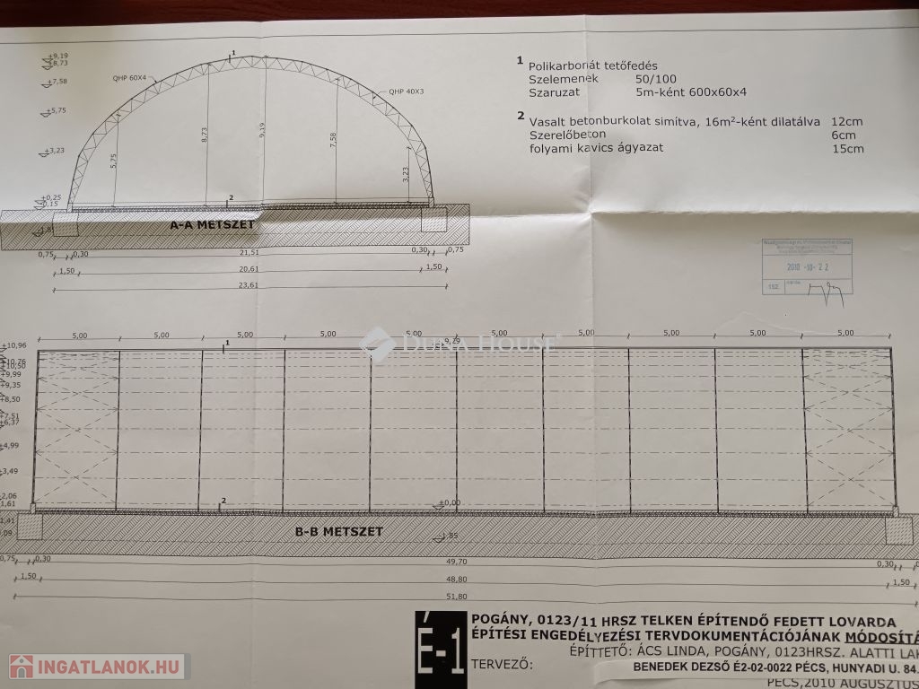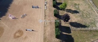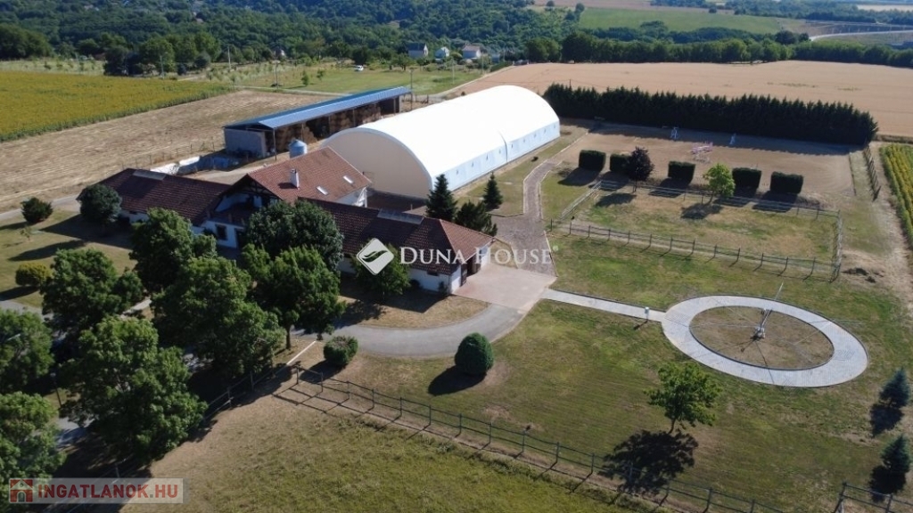 Eladó Lovarda Baranya Vármegyében, Pécstől 10 km-re, Pogány településen.Főbb jellemzők:5 Ha összes terület1 Istállóépület 20 db box-al, mindegyik önitatóval, vízelvezetéssel, világítópanelekkel, továbbá számos kiszolgáló és szociális helységgel az épületben.1 fedett lovarda homokos talajjal, új ponyva-tetőzettel és szellőzőkkel, 1100 nm-en6 db kifutókarám mindegyik új kerítéssel körbekerítve és vízcsappal ellátva1 kültéri pálya 4 évszakos talajborítással, vízelvezető csövezéssel 1500 nm-en1 járatógép2 db elkülönítő box1 fedett szénatároló, 1000 bála kapacitással1 siló1 trágya tároló1 tűzivíz- víztároló2 fúrt kút -melyek a létesítmény teljes vízigényét kiszolgálják1 vendégház1 közösségi tér a lovarda emeletén gépesített konyhával, étkező és társalgó helyekkel, kandallóval, nagy terasszalszámos parkolóhely a lovarda épülete előttszilárd útburkolat a bekötőúttól a lovardáig3 fázisú áramellátás, mely 2024-ben teljesen meg lett újítvaközponti gázkazán amely 2023-bán volt cserélvePécs 10 kmAutópálya 4 kmRepülőtér 2 kmDie Beschreitung auf Deutsch ist weiter unter zu finden.Reitstall im Komitat Baranya, 10 km von Pécs entfernt, in der Siedlung Pogány zu verkaufen.Hauptmerkmale:5 ha Gesamtfläche1 Stallgebäude mit 20 Boxen, jede mit eigener Tränke, Entwässerung, Beleuchtung sowie zahlreichen Service- und Sozialräumen im Gebäude.1 Reithalle mit Sandboden, neuem Planendach und Belüftung (1100 m²)6 Paddocks, jeweils mit neuem Zaun und Wasserhahn1 Außenlaufbahn mit Ganzjahresbodenbelag und Drainagerohren (1500 m²)1 Laufband2 Trennboxen1 Heulagerhalle (1000 Ballen)1 Silo1 Mistlager1 Löschwasserlager2 Bohrbrunnen zur Deckung des gesamten Wasserbedarfs der Anlage1 Gästehaus1 Gemeinschaftsraum im ersten Stock des Reitstalls mit integrierter Küche, Ess- und Aufenthaltsbereich, Kamin und großer TerrasseZahlreiche Parkplätze vor dem ReitstallgebäudeBefestigter Straßenbelag von der Zufahrtsstraße zum ReitstallDrehstromanschluss (2024 komplett erneuert)Zentraler Gaskessel (2023 ausgetauscht)Pécs 10 kmAutobahn 4 kmFlughafen 2 kmThe description in English can be found below.Horse Riding Stable for sale in Baranya County, 10 km from Pécs, in the settlement of Pogány.Main features:5 Ha total area1 Stable building with 20 boxes, each with self-drinking, drainage, lighting panels, as well as numerous service and social rooms in the building.1 indoor riding stable with sandy soil, new tarpaulin roof and ventilation, 1100 sqm6 paddocks, each with a new fence and water tap1 outdoor track with 4-season ground cover, drainage piping, 1500 sqm1 running machine2 separating boxes1 indoor hay storage, 1000 bale capacity1 silo1 manure storage1 fire water storage2 drilled wells - which serve the entire water needs of the facility1 guesthouse1 community space on the first floor of the riding stable with a mechanized kitchen, dining and lounge areas, fireplace, large terracenumerous parking spaces in front of the riding stable buildingsolid road surface from the access road to the riding stable3-phase electricity supply, which was completely renewed in 2024central gas boiler which was in 2023 exchangedPécs 10 kmMotorway 4 kmAirport 2 km