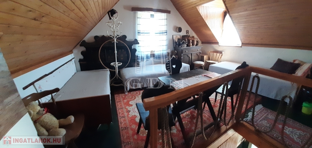 A földszinten konyha-étkező, hálószoba, külső vécé, fedett terasz található.