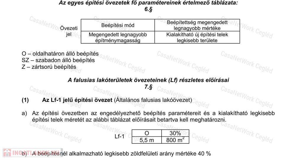 Lf-1 jelű építési övezetbe tartozik. (képek között található ennek térképe és pontos leírása/