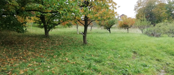 A telek folyamatosan karbantartott, nagy része gyümölcsfákkal.